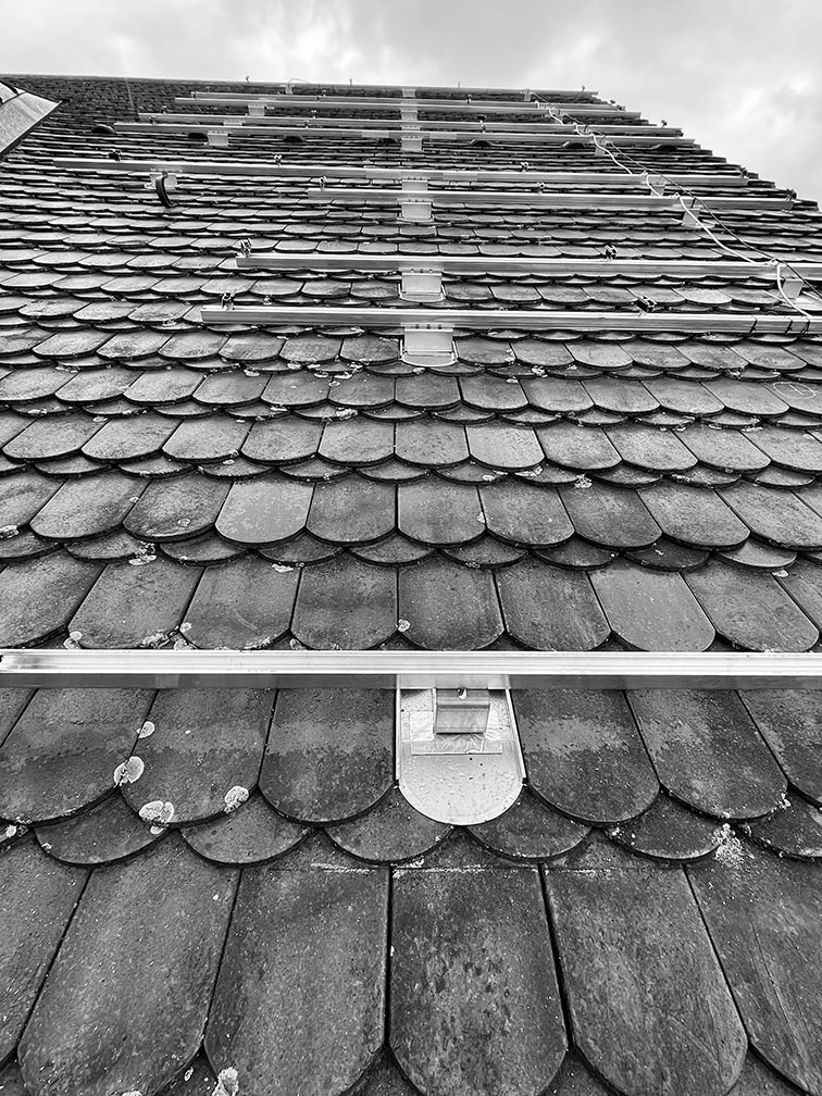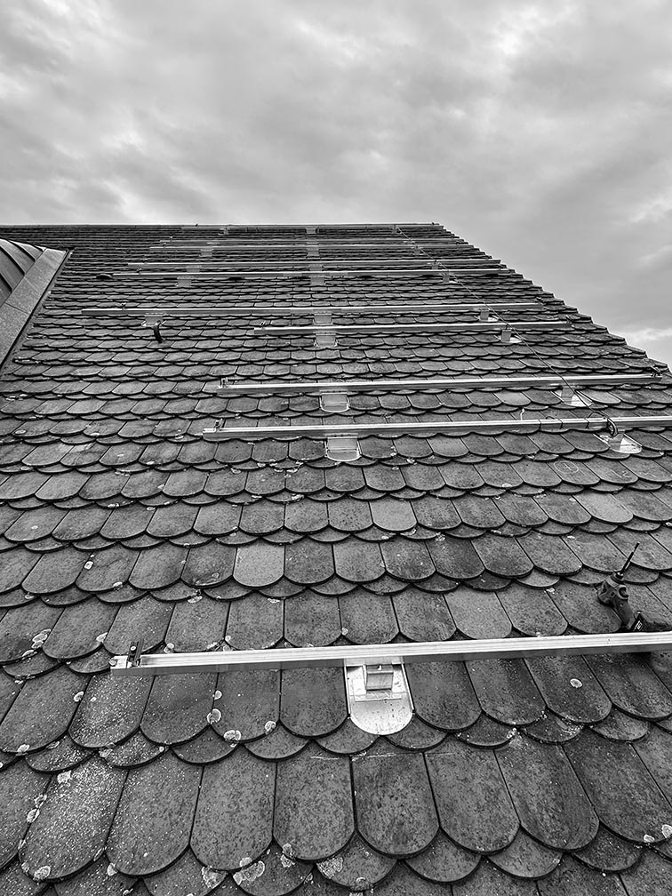 Wir führen vor jeder Installation eine gründliche Dachinspektion durch, um sicherzustellen, dass Ihr Ziegeldach für eine Photovoltaikanlage geeignet ist. In den meisten Fällen können wir maßgeschneiderte Lösungen anbieten.